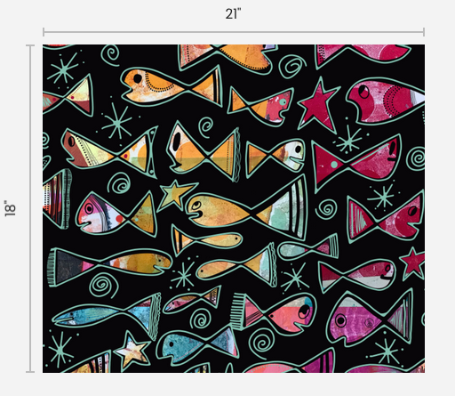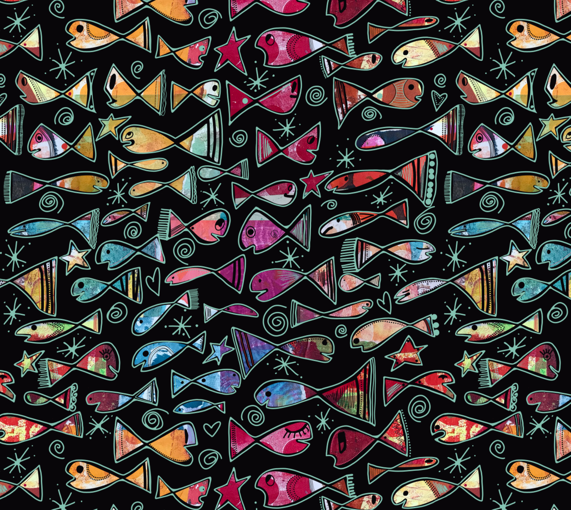Plouf est un motif original où je me suis amusée à dessiner tous les minis détails et les regards de chaque poisson. La répétition de ce motif est infinie. Amuse-toi à créer tout ce que tu veux! Tu remarqueras que chaque fibre possède une largeur bien à elle. J'ai mis une image pour que tu vois la grandeur de l'illustration imprimée et des poissons!!!